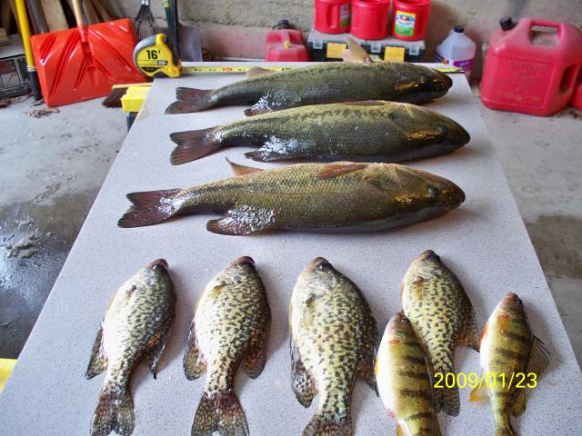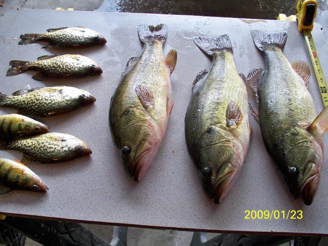 Three nice bass all around 15 to 16 inches and a few crappie and perch