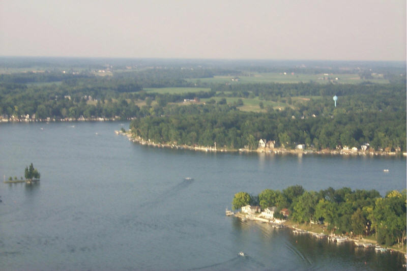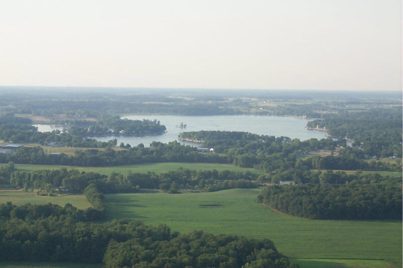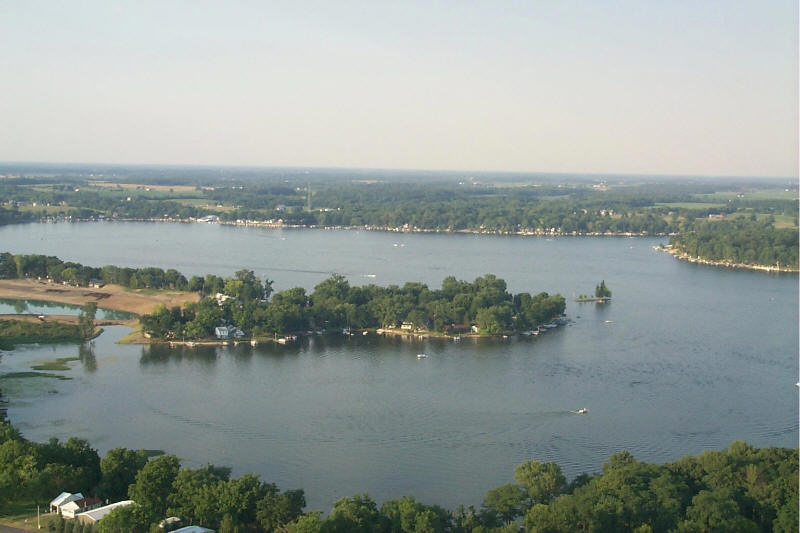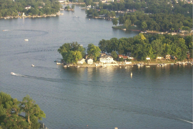 Looking down on Muskrat Bay. Our house is the white one left of the house with the red roof.