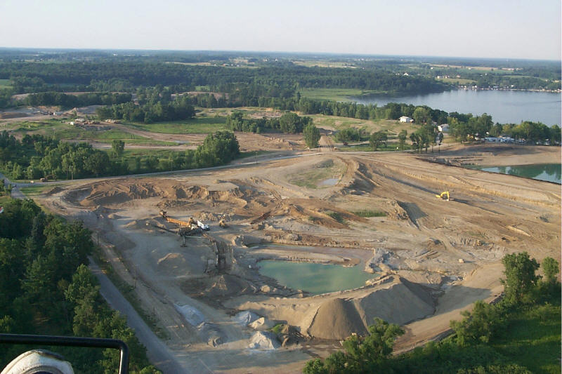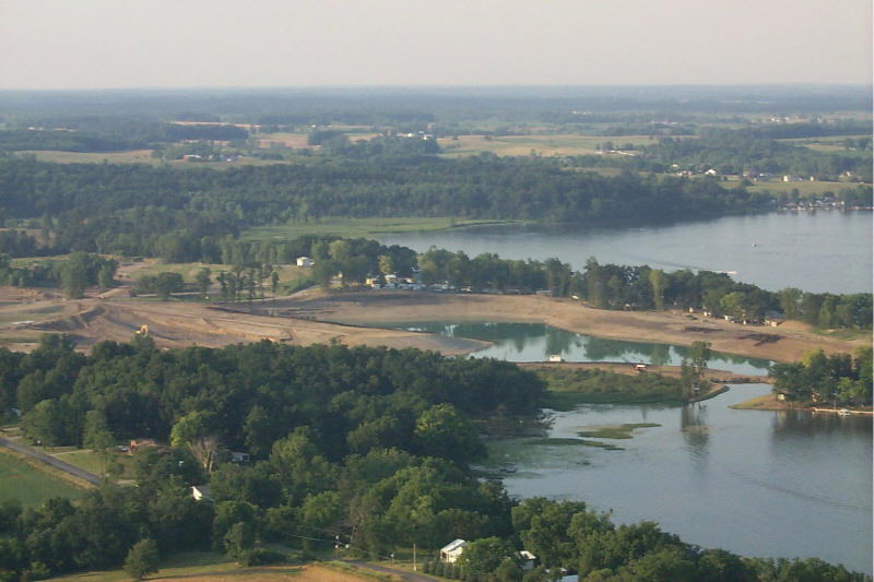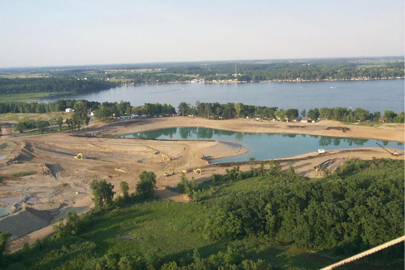 Looking over the construction. The large white building on the far shore is Clarks landing Marina.