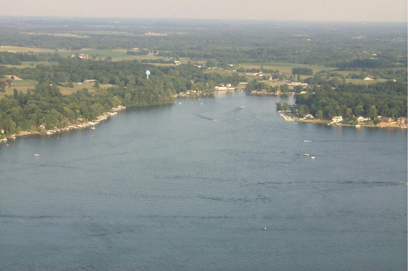 At the west side of the lake looking east into the neck. The public boat launch is on the south shore ( to the right)
